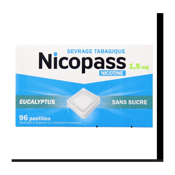 Nicopass 1.5mg sans sucre eucalyptus 96 pastilles édulcorées à sucer est disponible chez parabioty la première parapharmacie en ligne au maroc avec meilleur prix maroc et livraison partout au maroc